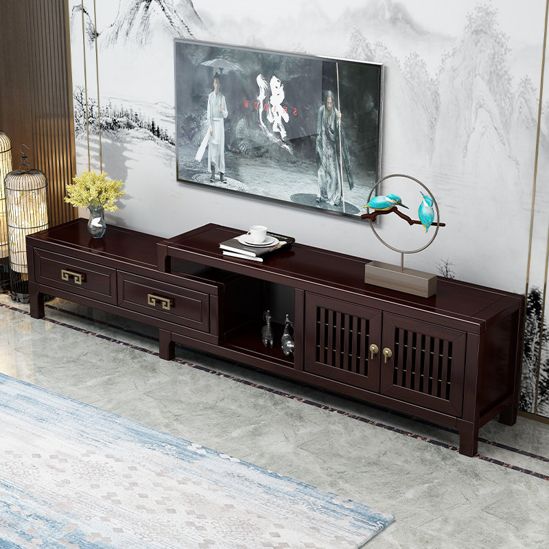 客厅实木电视柜新中式组装地柜伸缩1.7/2.4米影视柜茶几组合包邮热门设计联盟服务商