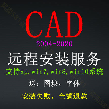 CAD2007 2010 2012 2014 2016 2019 2020 软件远程安装送图库字体热门设计联盟服务商