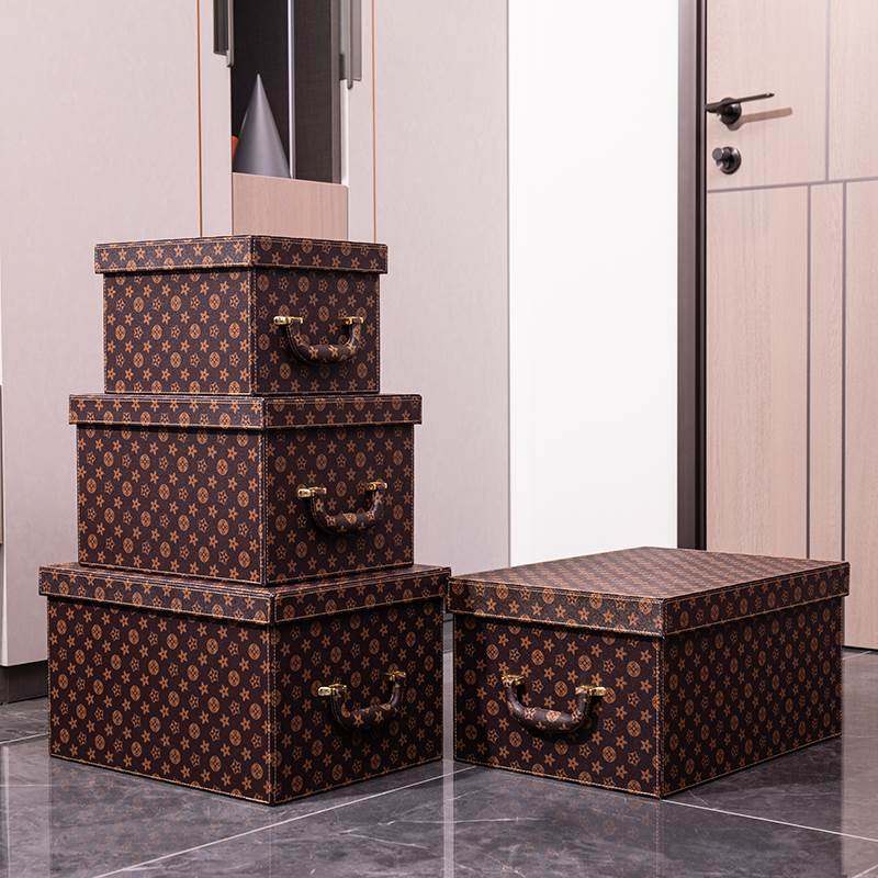 皮质收纳整理中小号储物箱箱衣箱柜衣帽样板间橙色摆件装间饰大盒