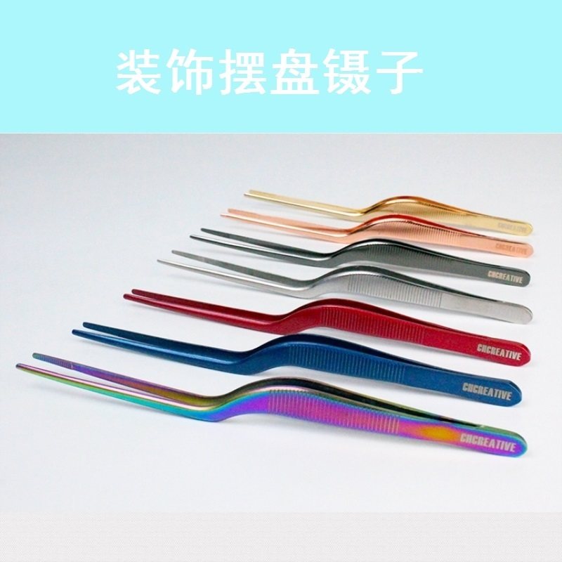 .西餐镊子夹子菜盘装饰尖嘴冷菜中西餐厨师夹放小号工具尖头弯头热门设计联盟服务商