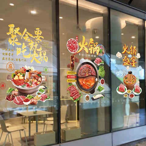 餐饮火锅店美食文案个性创意玻璃门贴画餐厅饭店装饰墙面贴纸热门设计联盟服务商