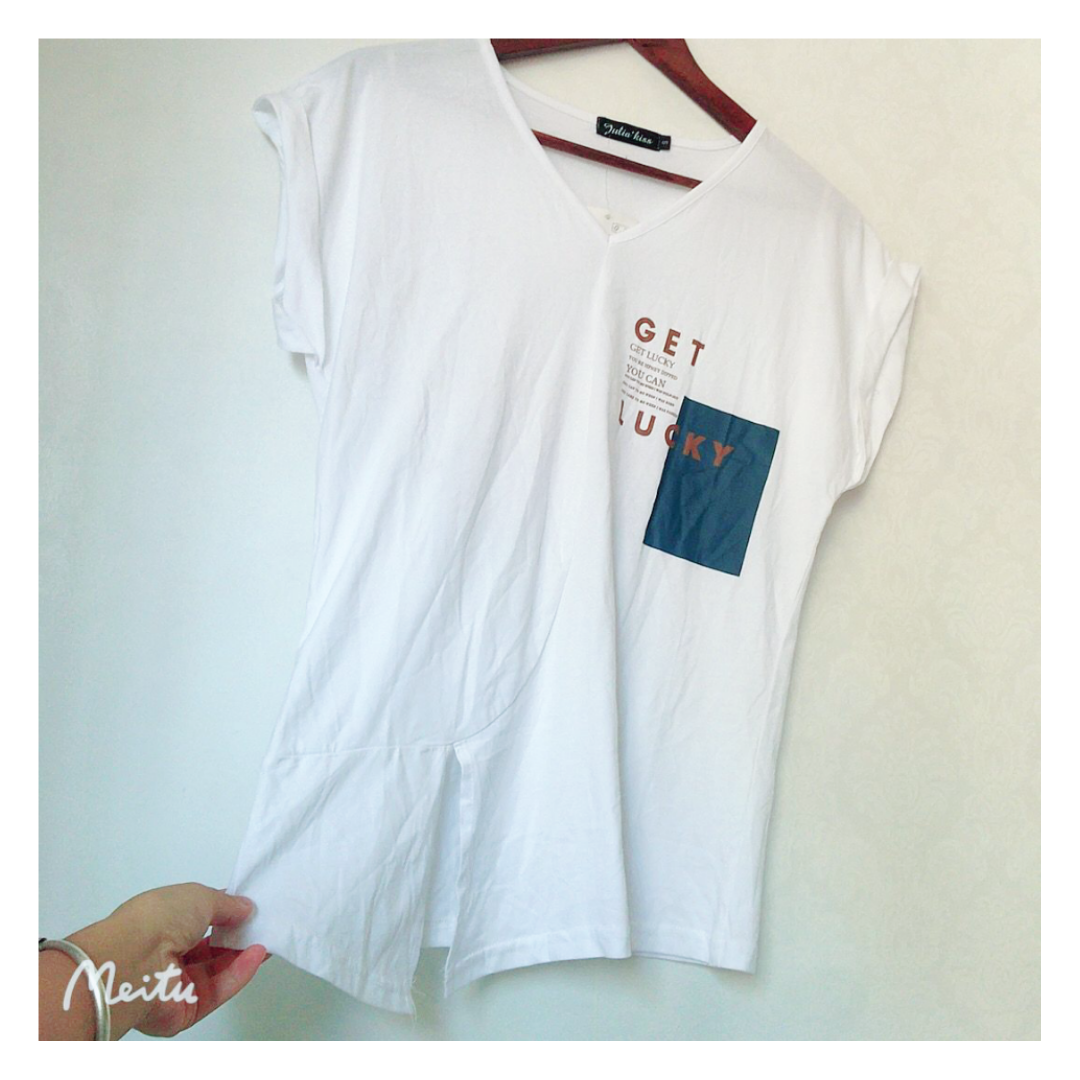 2021女士夏季韩版V领短袖t恤上衣个性下摆叉设计全新正品热门设计联盟服务商