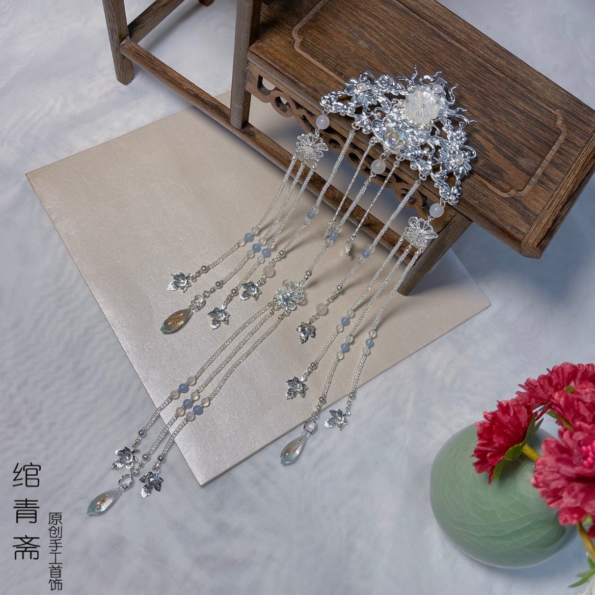 亦白姐姐绾青斋 清露 原创设计汉服配饰镀银发饰超长流苏发夹耳饰热门设计联盟服务商