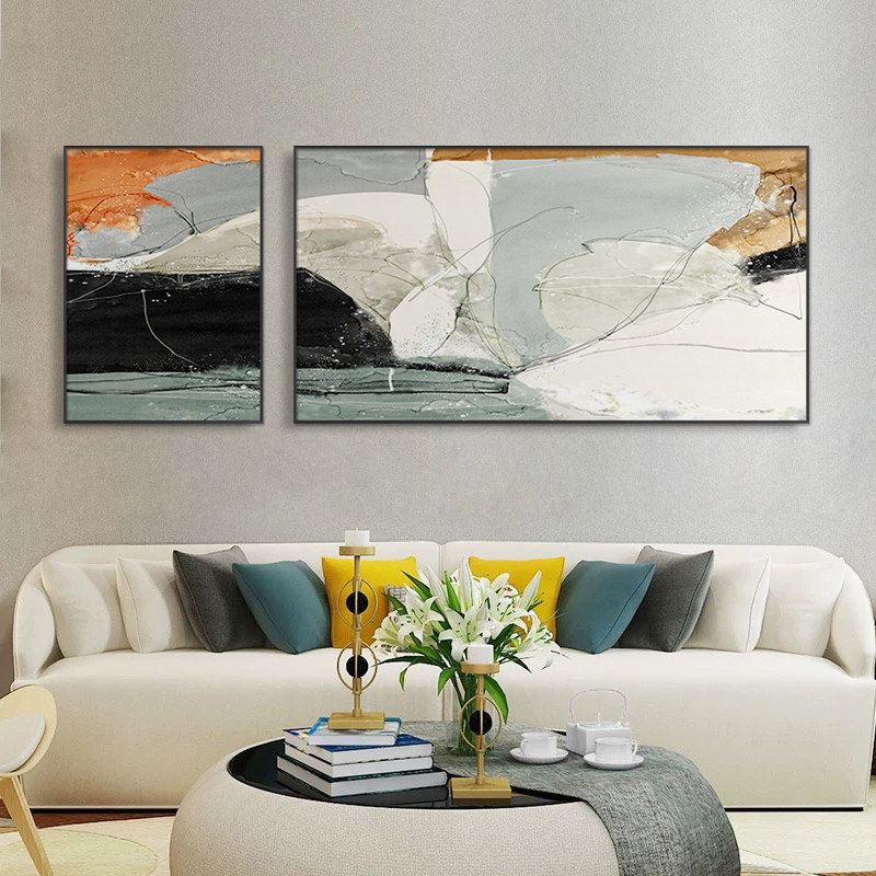 现代客厅装饰画抽象横幅沙发背景墙横版艺术组合北欧创意墙壁挂画热门设计联盟服务商