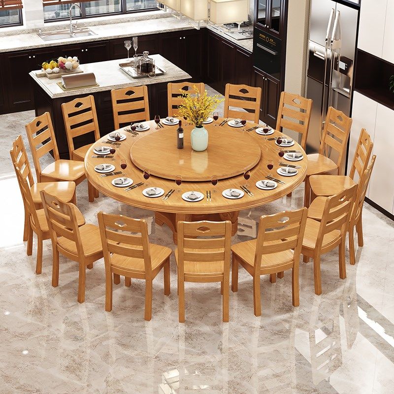 实木大圆桌餐桌椅组合现代简约圆形家用饭店桌子餐馆餐饮餐厅食堂热门设计联盟服务商