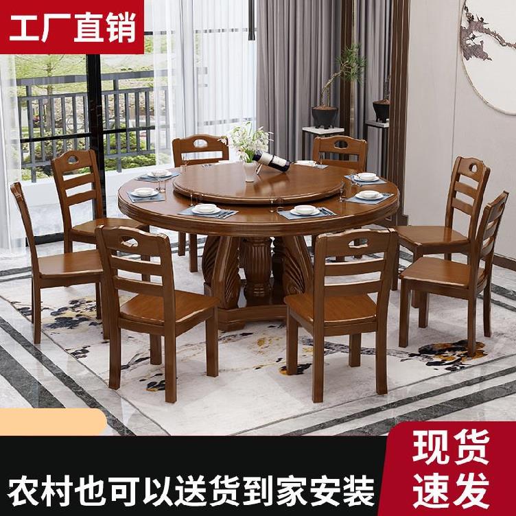 实木餐桌桌椅组合大圆桌20人10人饭桌1.5米的简易商用酒店会所6人热门设计联盟服务商