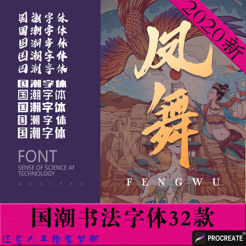 procreate字体复古古风书法国潮中文海报设计创意艺术毛笔字热门设计联盟服务商