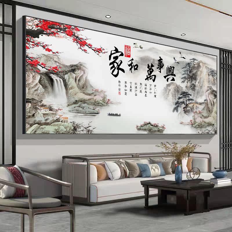 新中式山水挂画客厅装饰画沙发墙办公室横幅国画中国风镇宅风水画热门设计联盟服务商