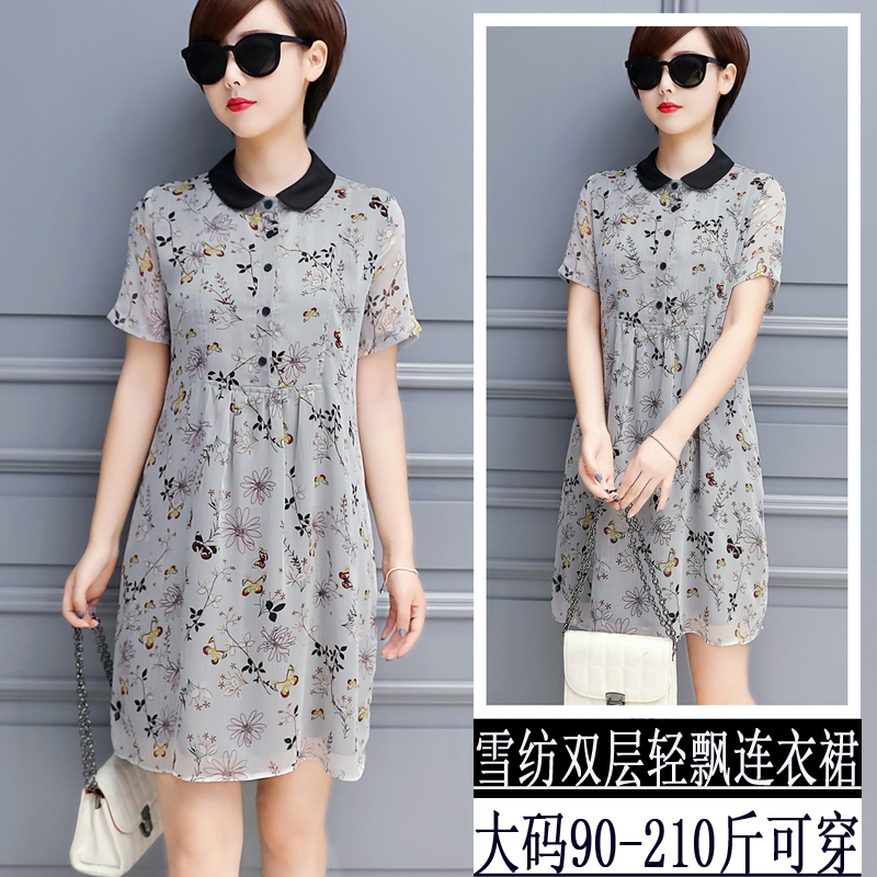 大码女装新款2021款 遮肚子雪纺a字裙小个子高端洋气遮腹连衣裙热门设计联盟服务商